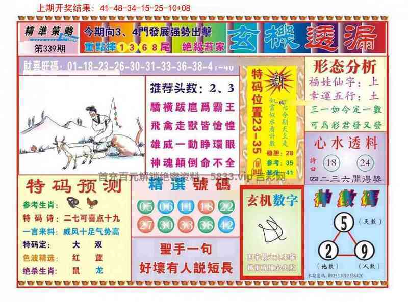 341期:曾道人精选/另简单玄机/另三句赢钱/双色特码诗/钻石玄机